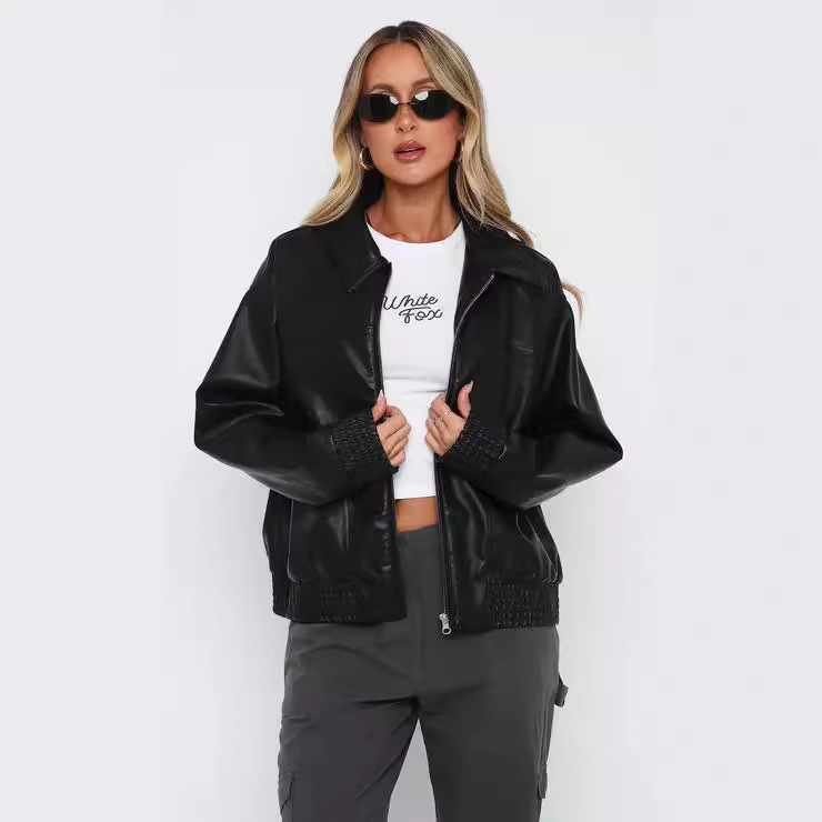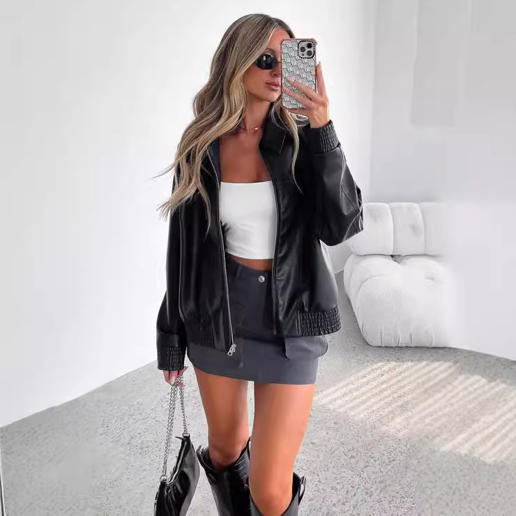 | Keep it casual yet chic with these women’s leather jackets. Perfect for fall, these jackets add a sleek and stylish layer to any outfit. Pair them with your favorite jeans or dress for a quick and easy trendy look. Whether you’re heading to the office, brunch, or an afternoon outing, these jackets keep you warm while adding a fashionable edge to your wardrobe. A must-have for every fashion lover this season! |